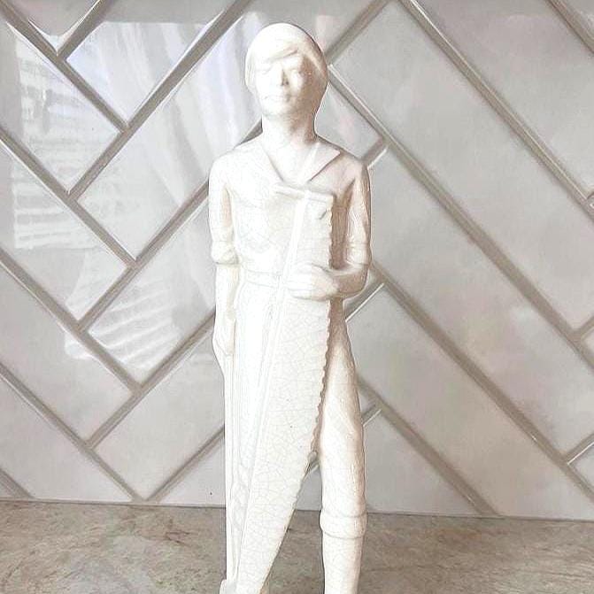 The subject—a person in sailor-style attire clutching a large saw—blends surreal storytelling with unexpected form, making this piece a standout for lovers of outsider art, strange collectibles, and offbeat decor. Whether displayed on a shelf, in an art nook, or added to an eclectic gallery wall, it’s sure to make people pause and ask, "What’s the story here?"