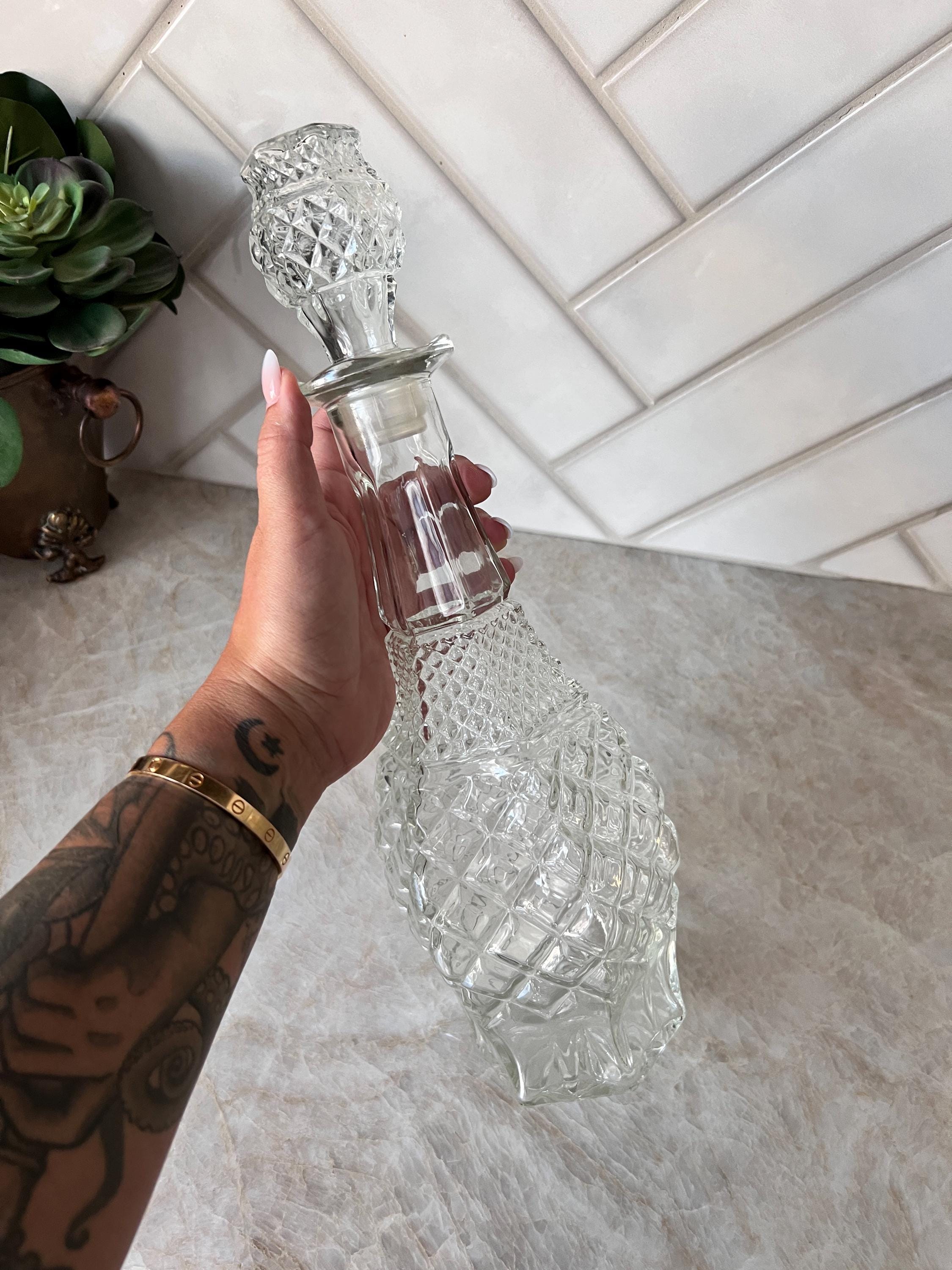 Use it as a statement liquor bottle, a glamorous vase, or a striking kitchen display piece. This retro piece brings timeless mid-century charm to your glassware collection or cottagecore home styling.