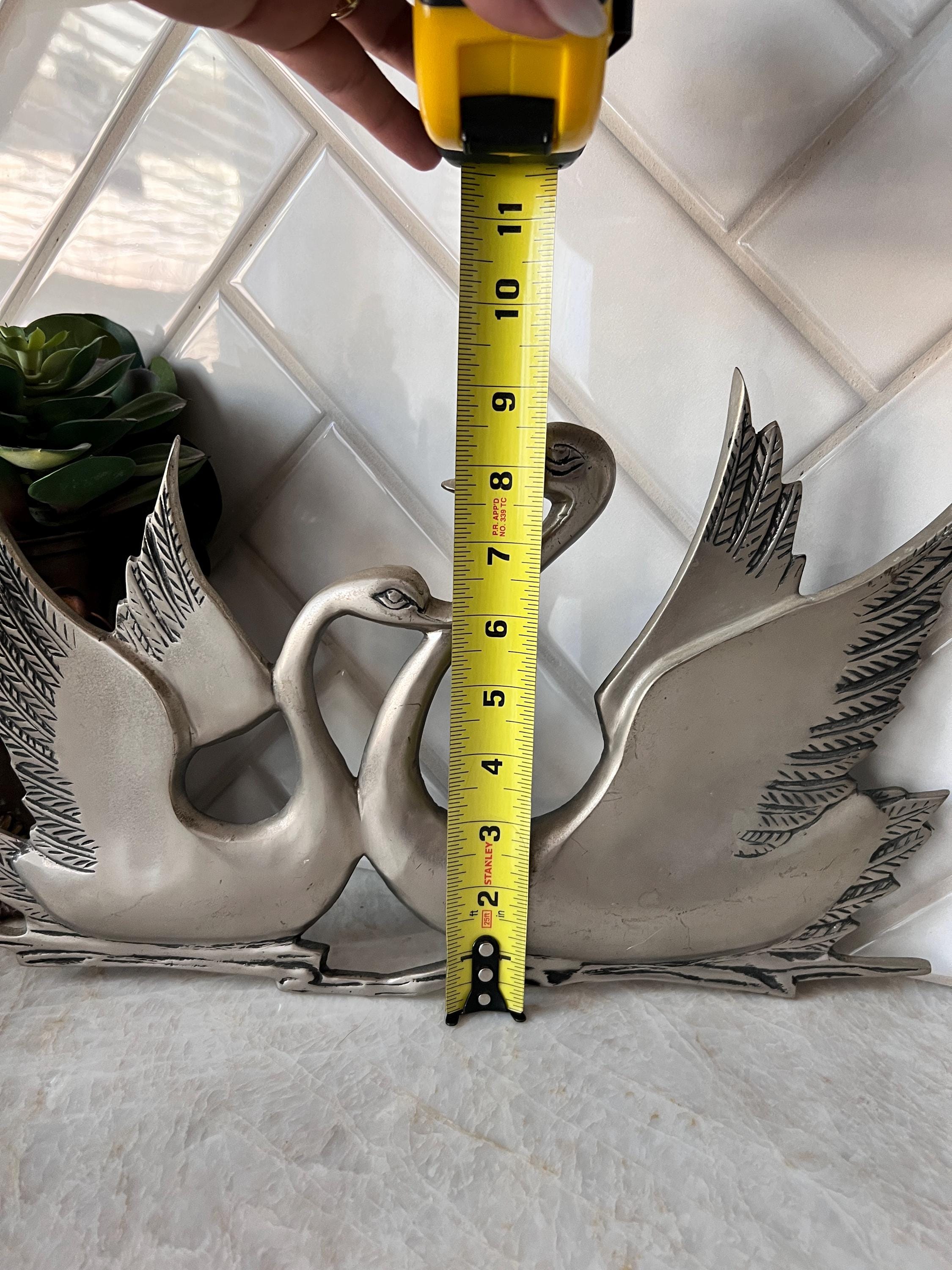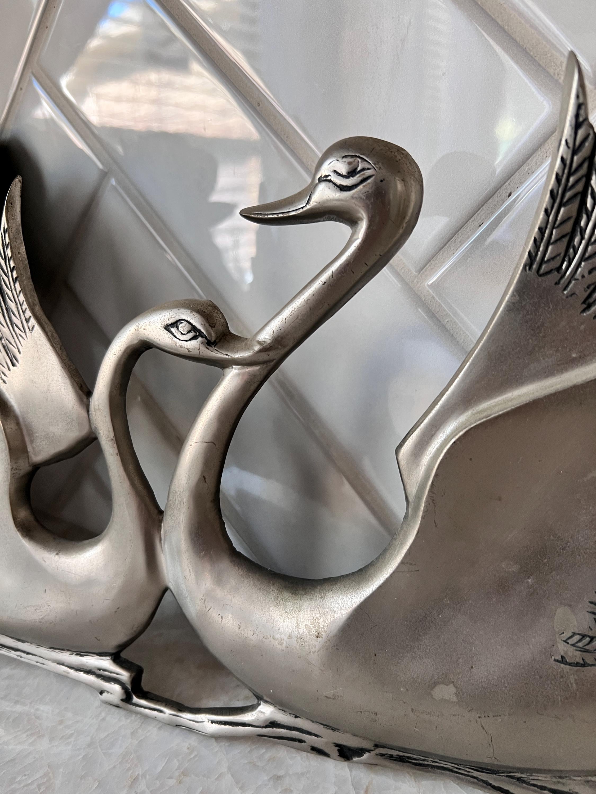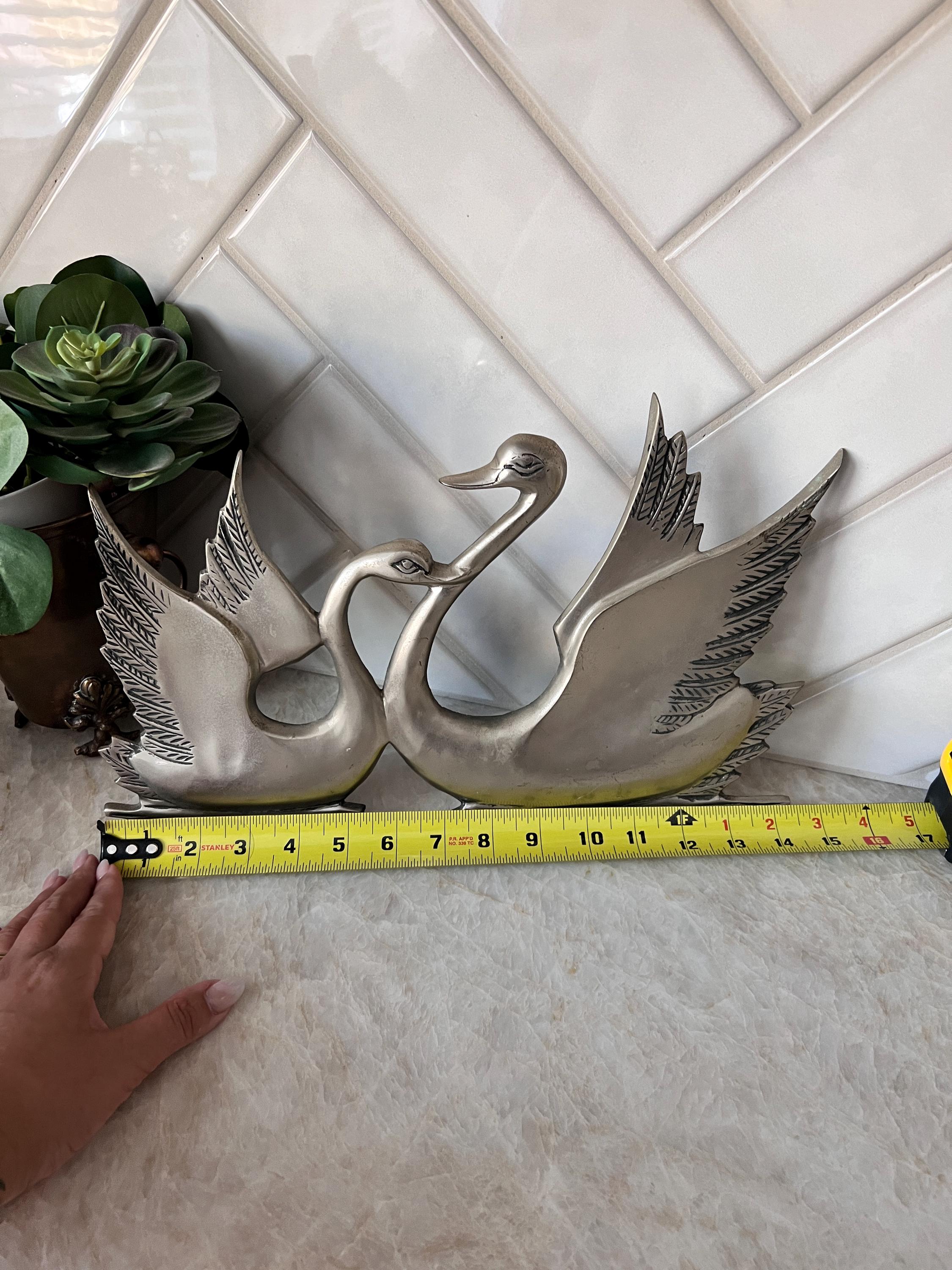 Add a touch of elegant romance to your space with this vintage brass swan wall hanging featuring two beautifully stylized swans with raised wings and intricate detailing. The graceful lines and brushed brass finish give it an Art Deco or Hollywood Regency flair, perfect for gallery walls, entryways, or vintage-inspired interiors.