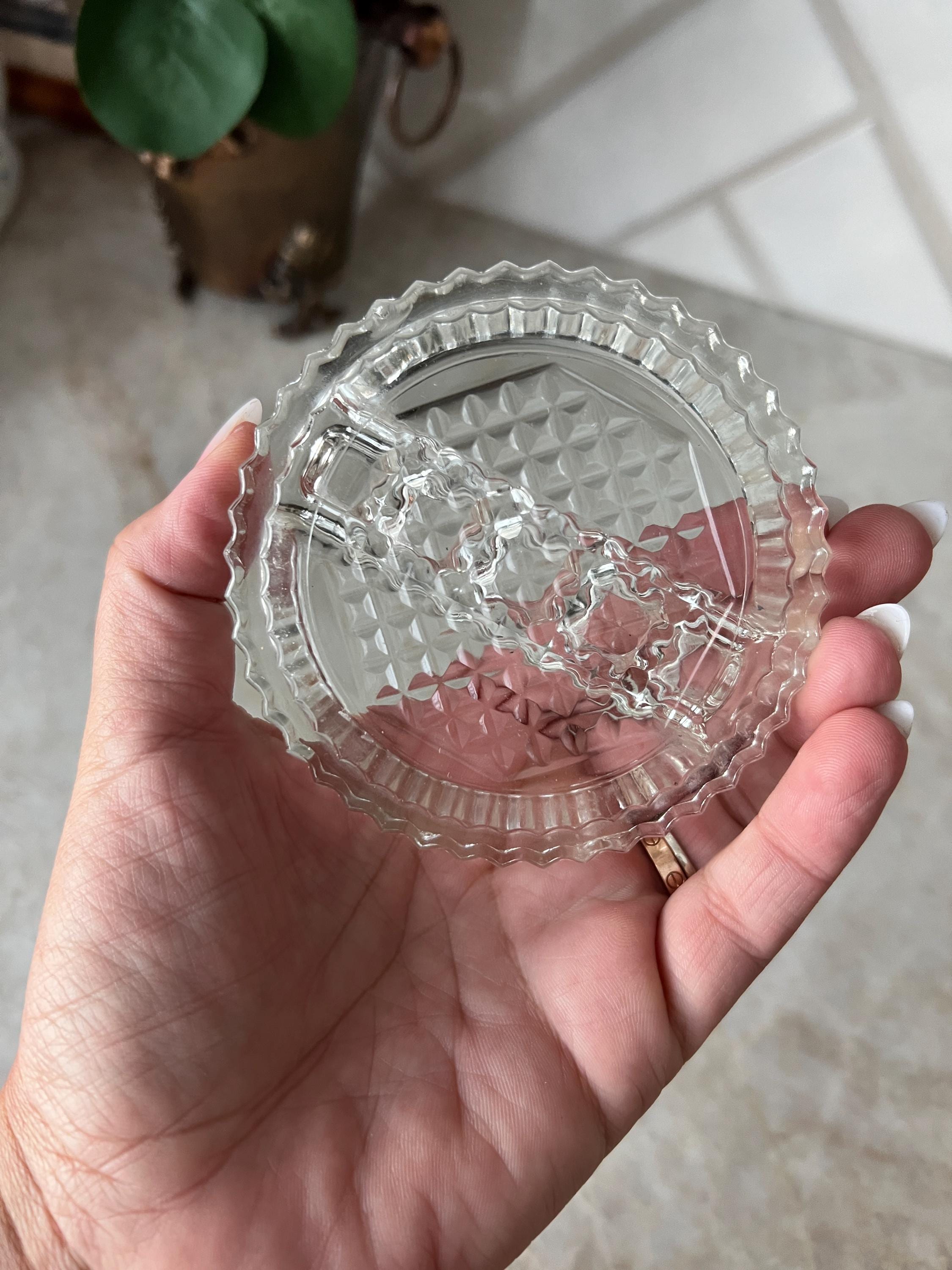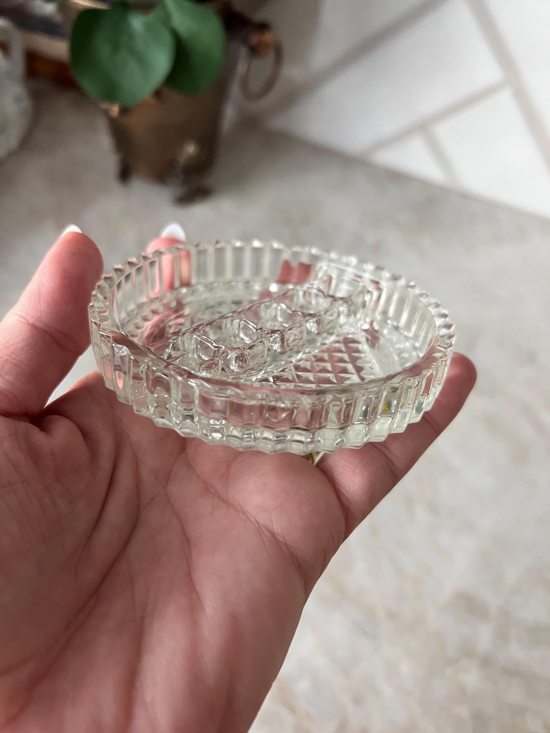 Whether you're a collector of depression glass, a lover of retro smoking accessories, or searching for a charming trinket dish or ring holder, this timeless piece makes a functional and decorative statement.