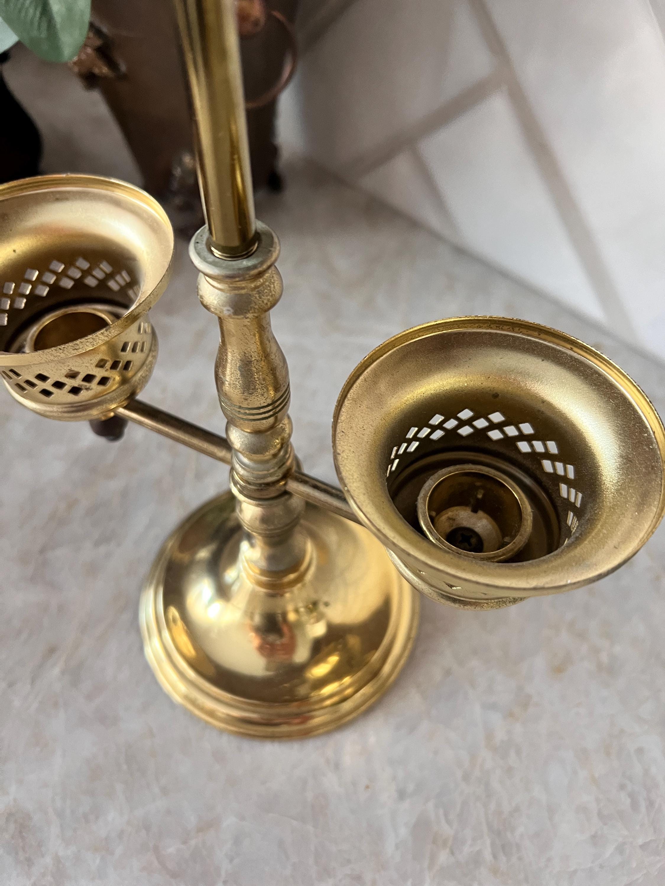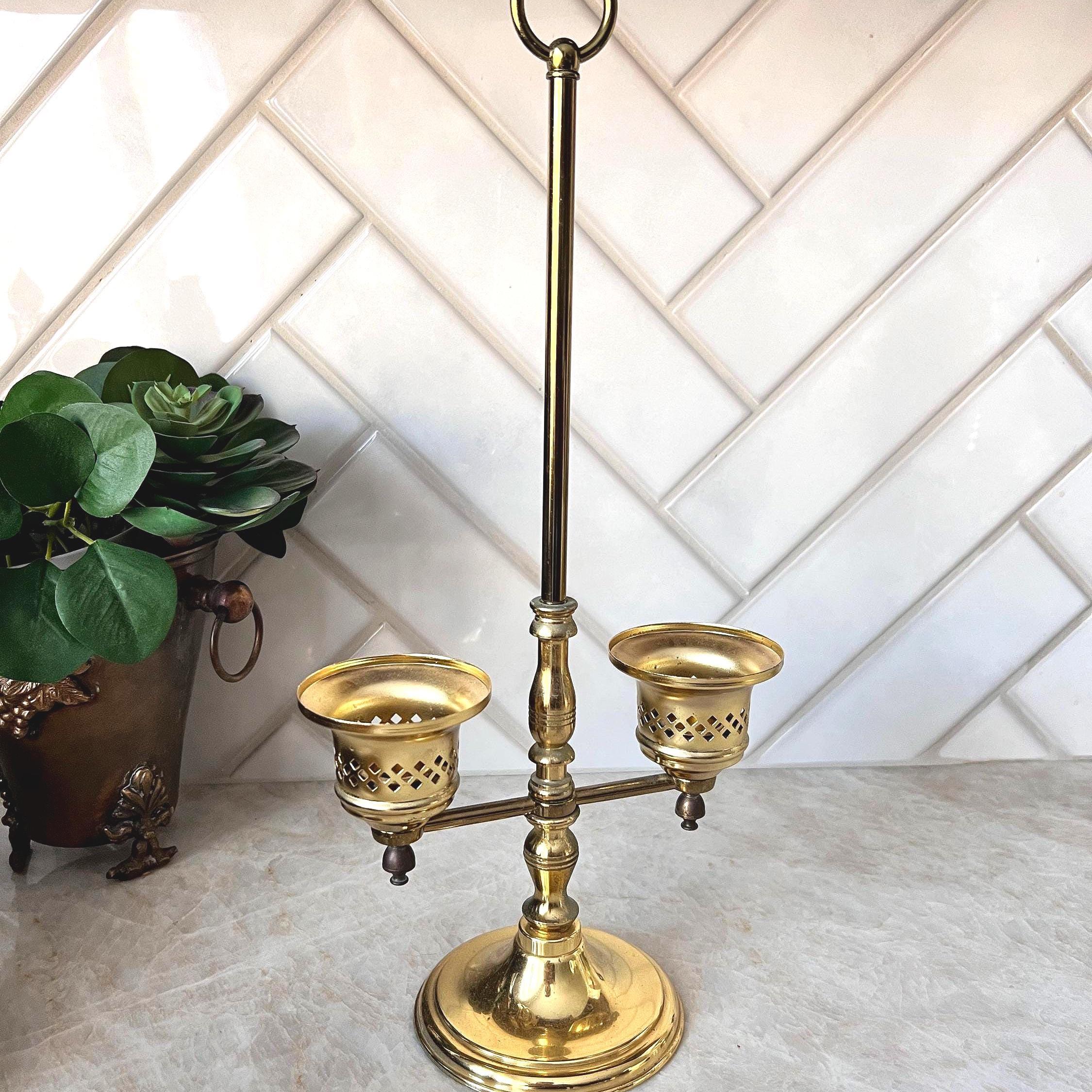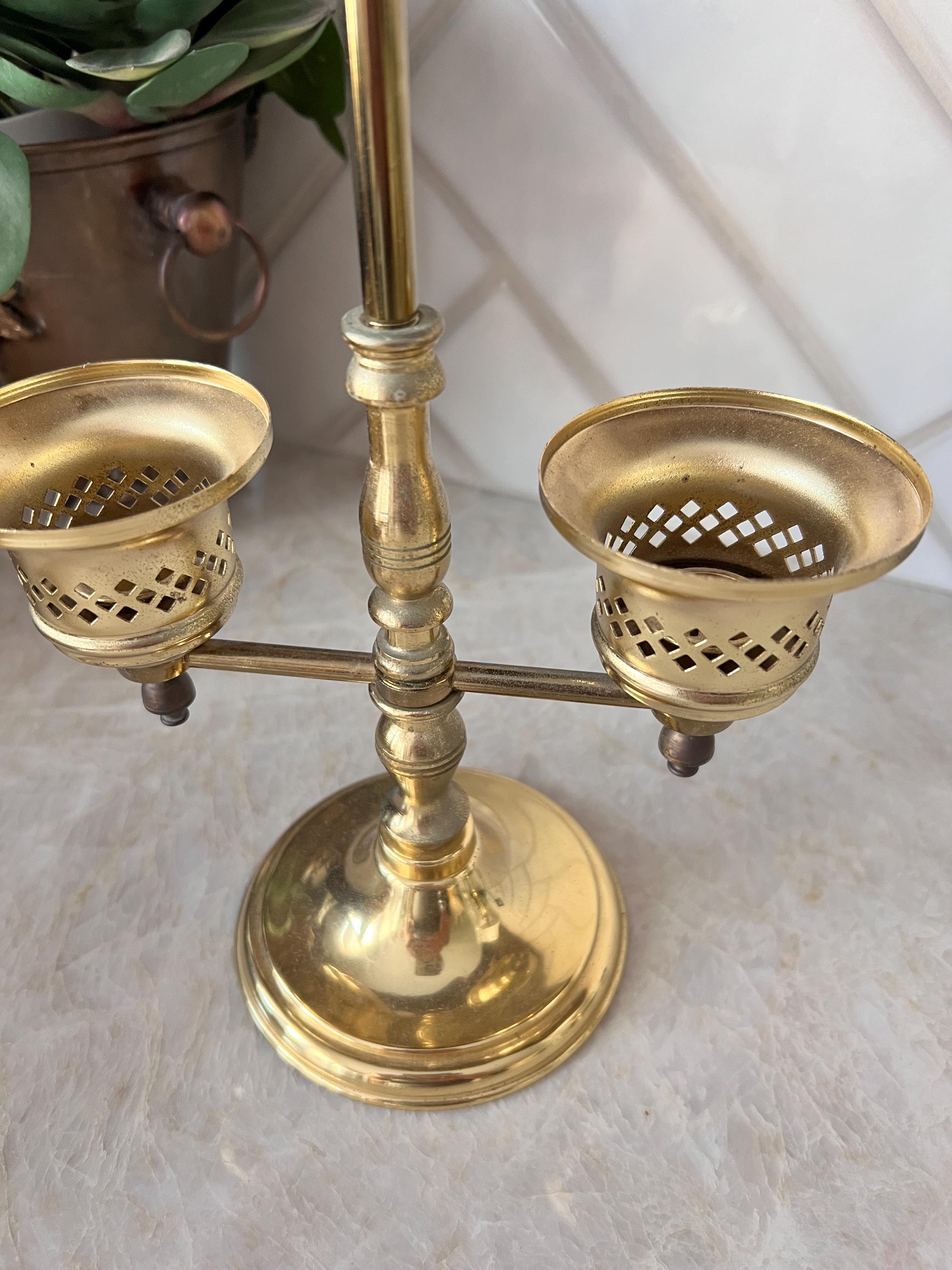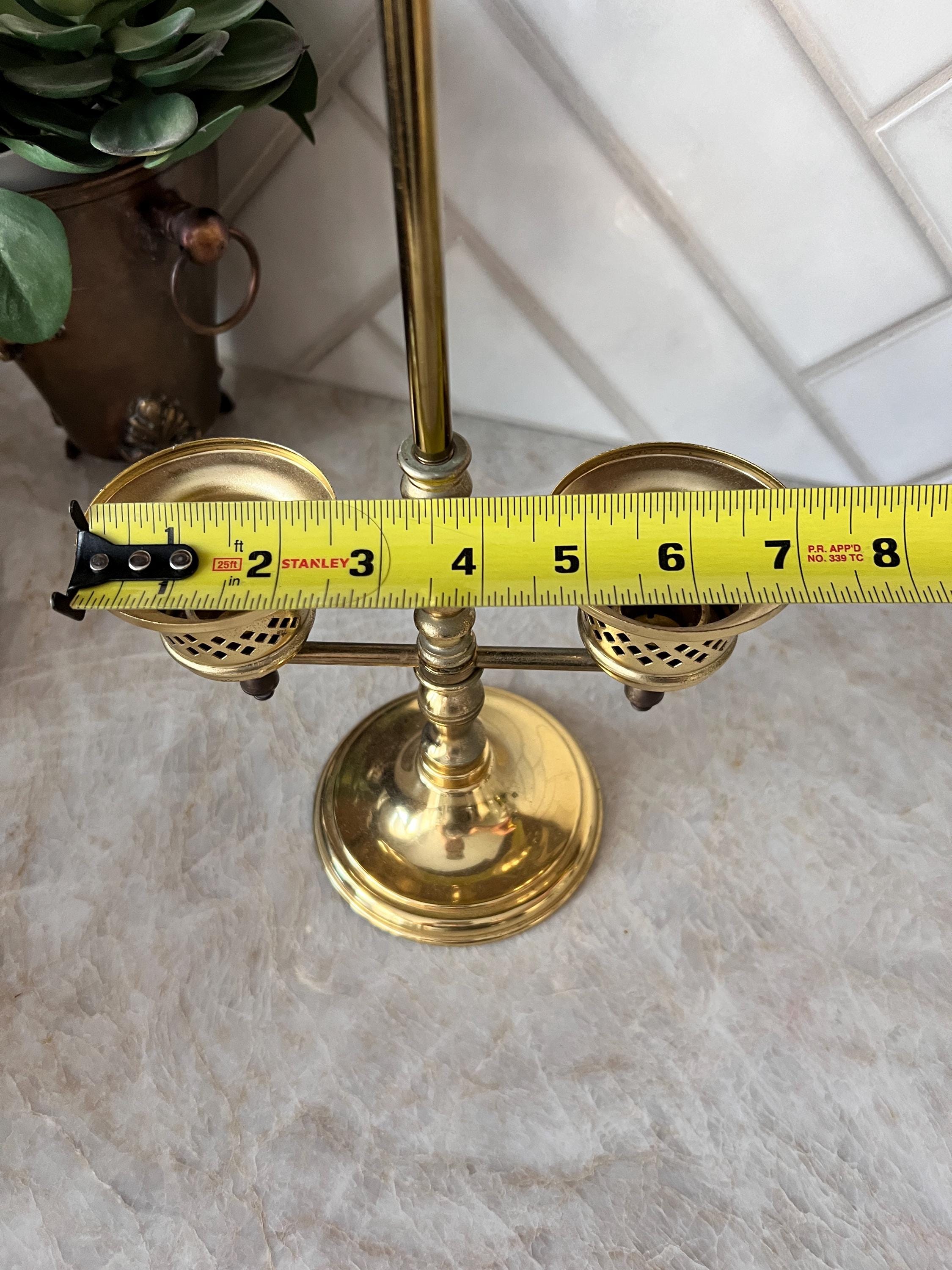 Add a touch of timeless charm to your home with this vintage Princess House double candelabra. Crafted in gleaming brass with a central ringed handle and twin taper candle holders, this piece exudes vintage elegance. Whether you’re styling a romantic dinner, adding ambiance to your mantel, or curating a maximalist gallery shelf, this candelabra delivers a perfect mix of function and Hollywood Regency flair.