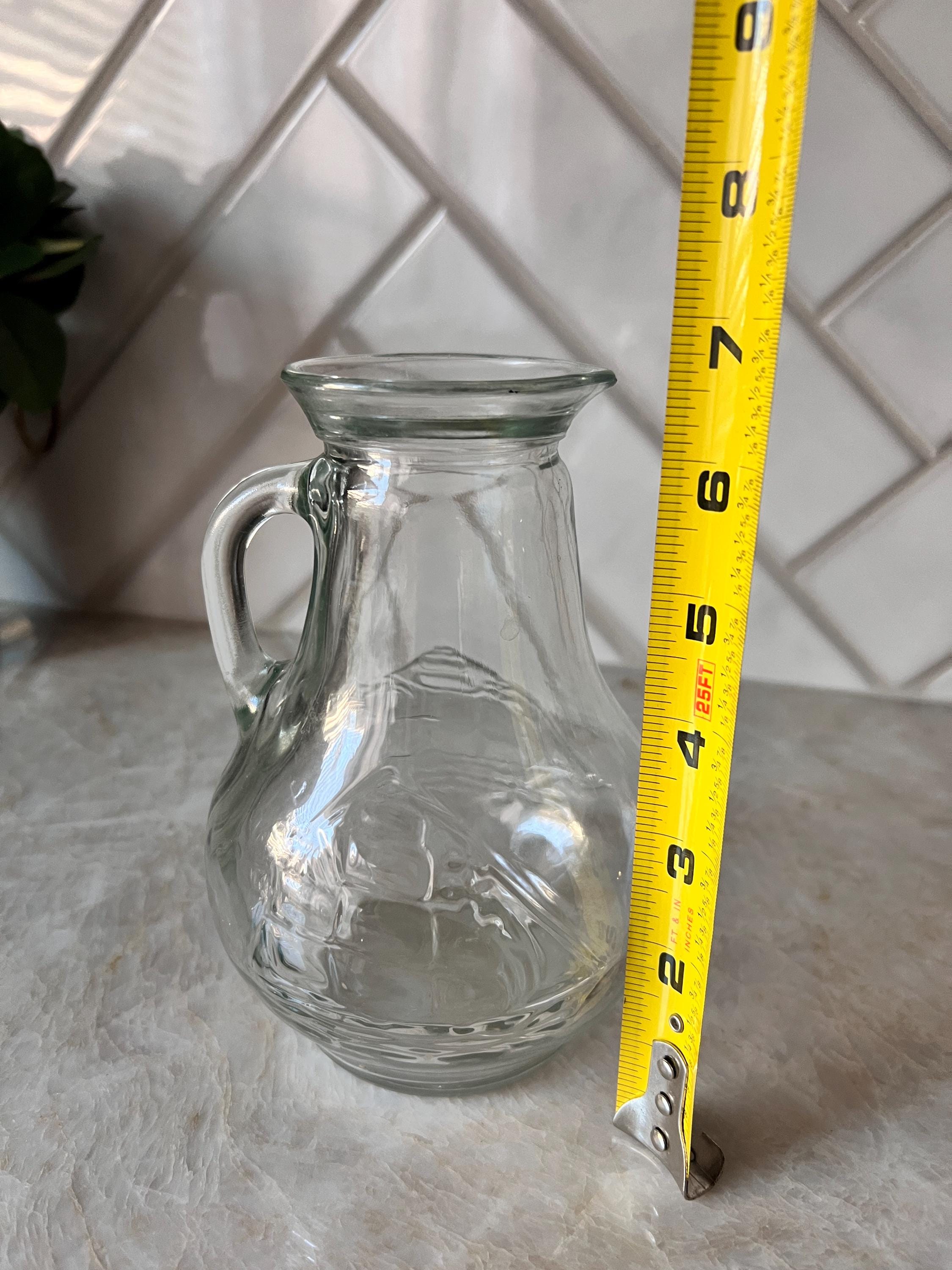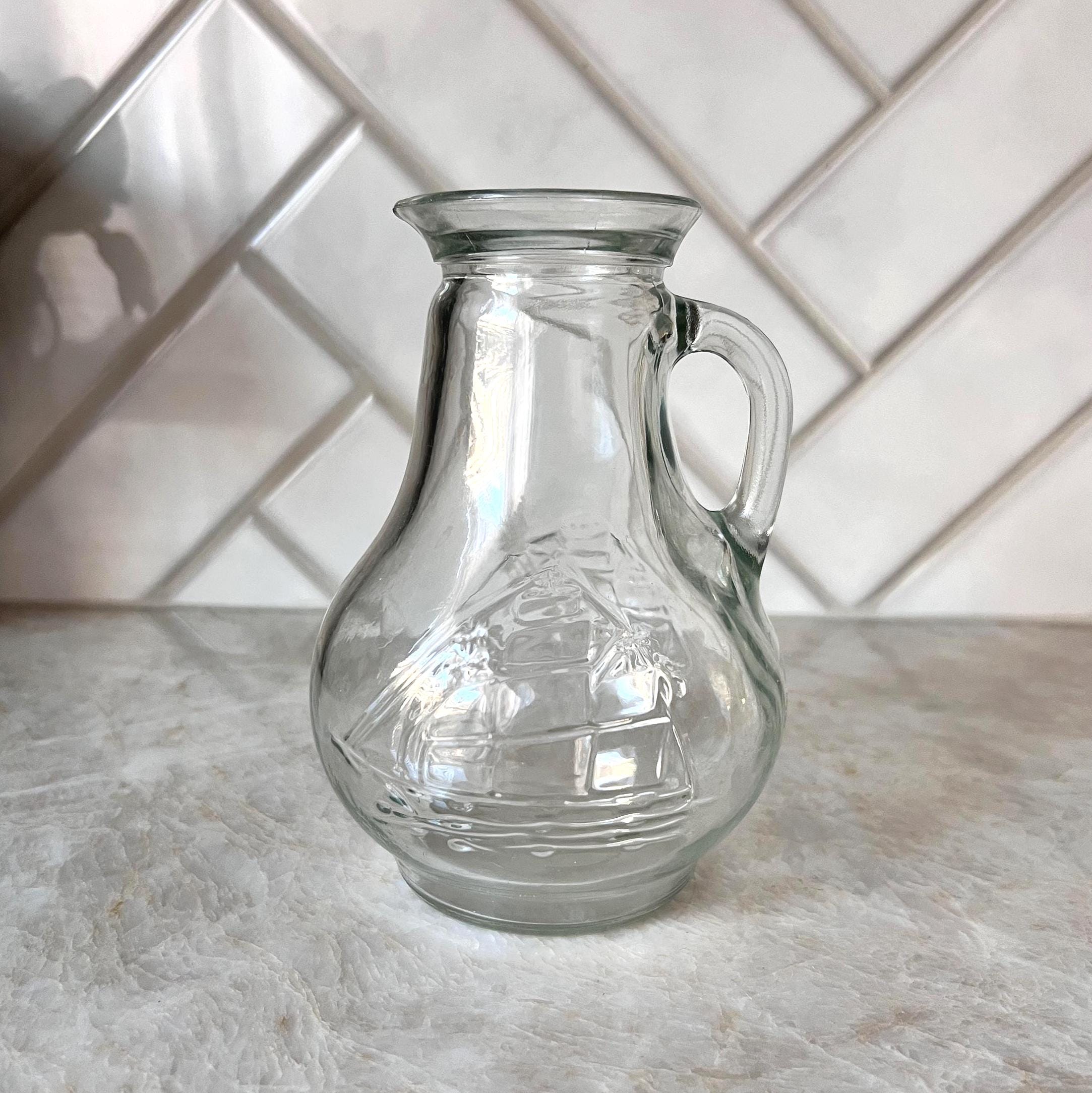 Set sail into vintage charm with this clear glass Atlas pitcher, beautifully embossed with a detailed tall sailing ship. With its sturdy handle, classic curves, and coastal appeal, this vintage nautical pitcher brings maritime nostalgia to any kitchen, bar cart, or beach house décor.