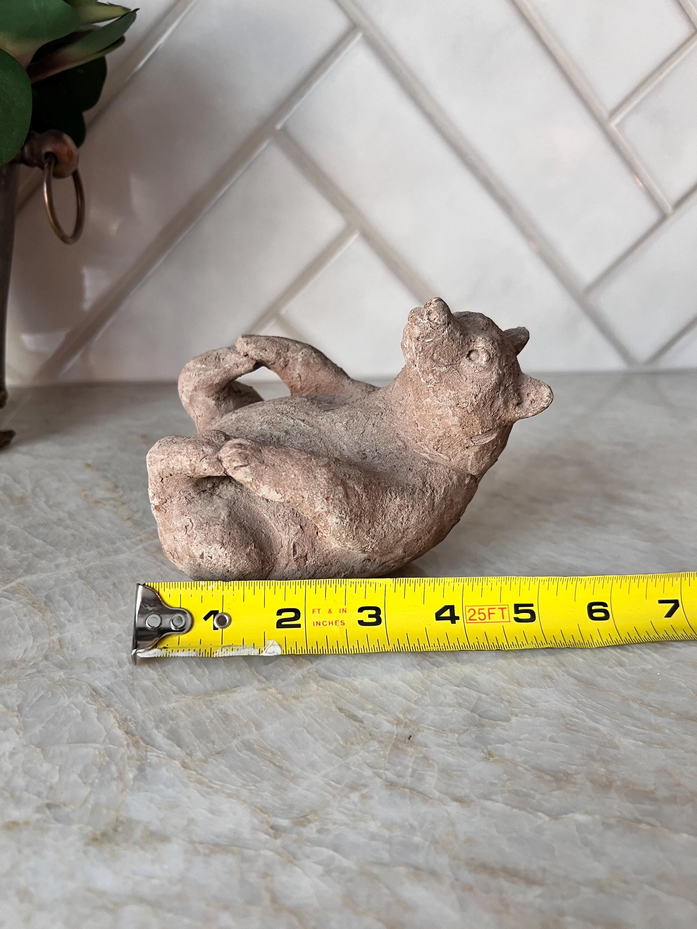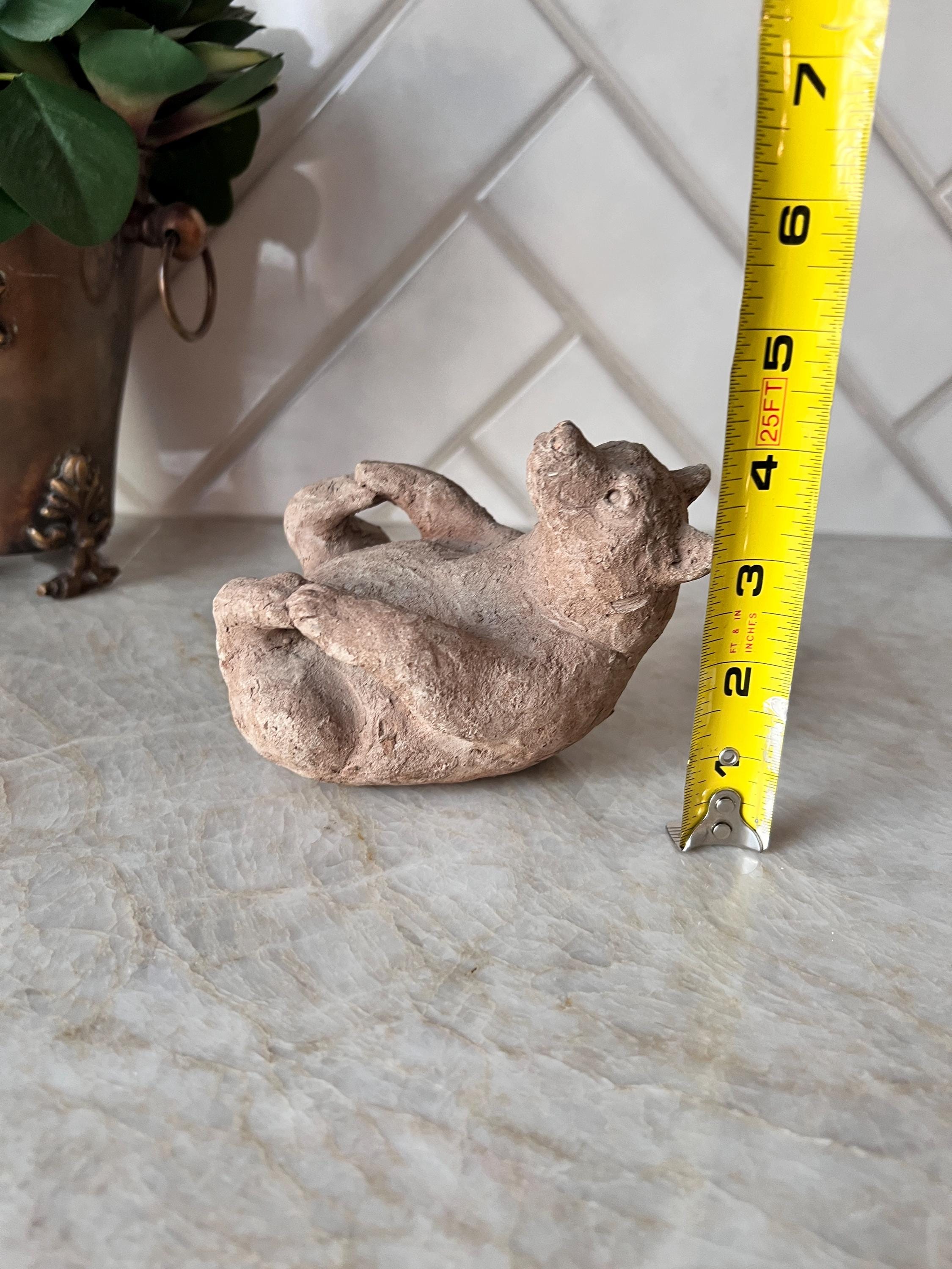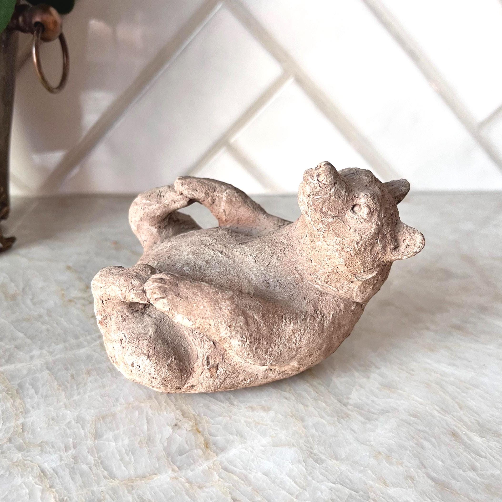 This charming vintage Scandinavian bear sculpture brings the warmth and whimsy of Nordic folk art to your space. Hand-formed from natural clay, this small reclining bear features primitive detailing and a rustic finish that highlights its handmade character. Whether you’re styling a woodland nursery, a cozy cabin shelf, or a Scandinavian-inspired vignette, this little creature adds personality and storytelling charm.