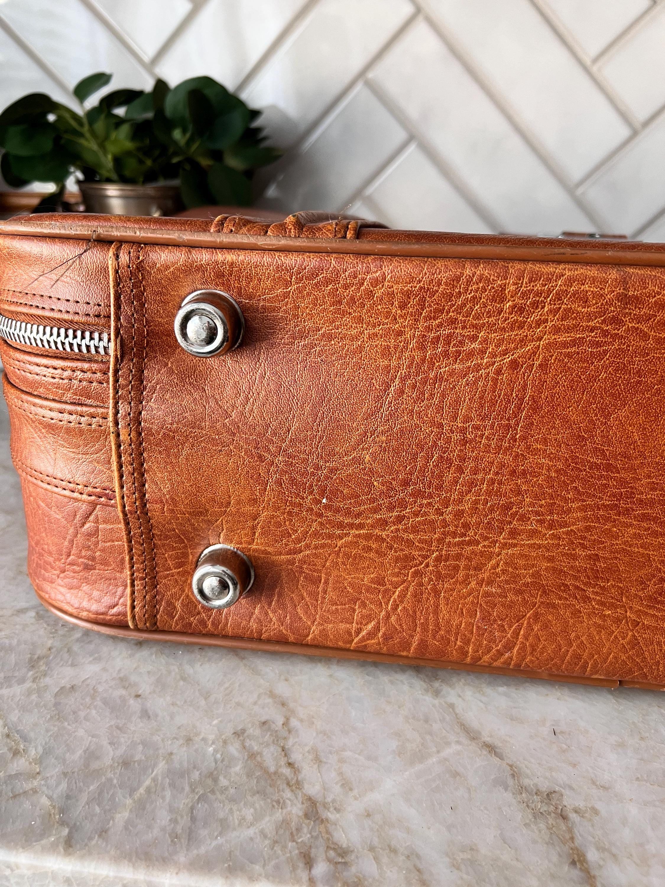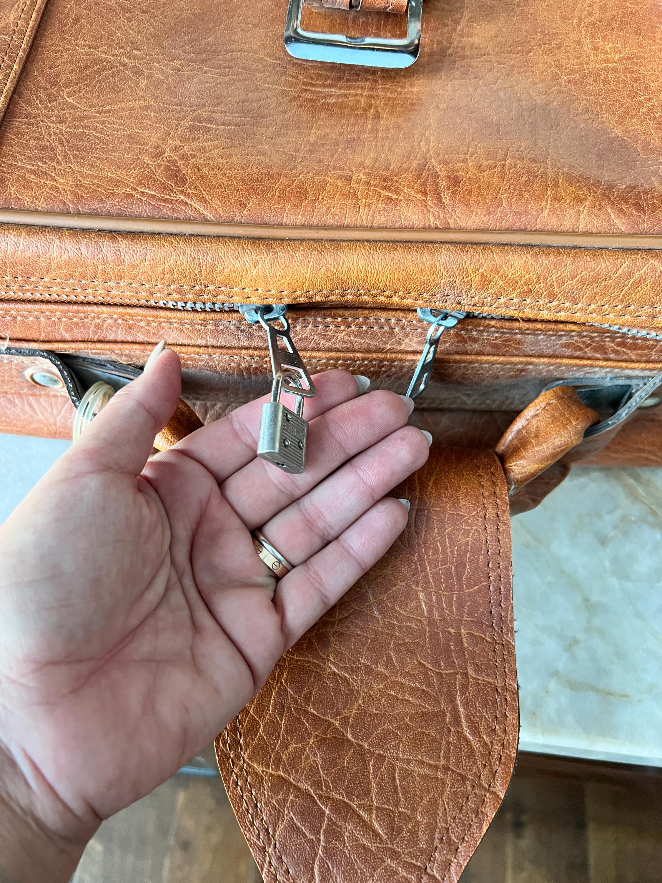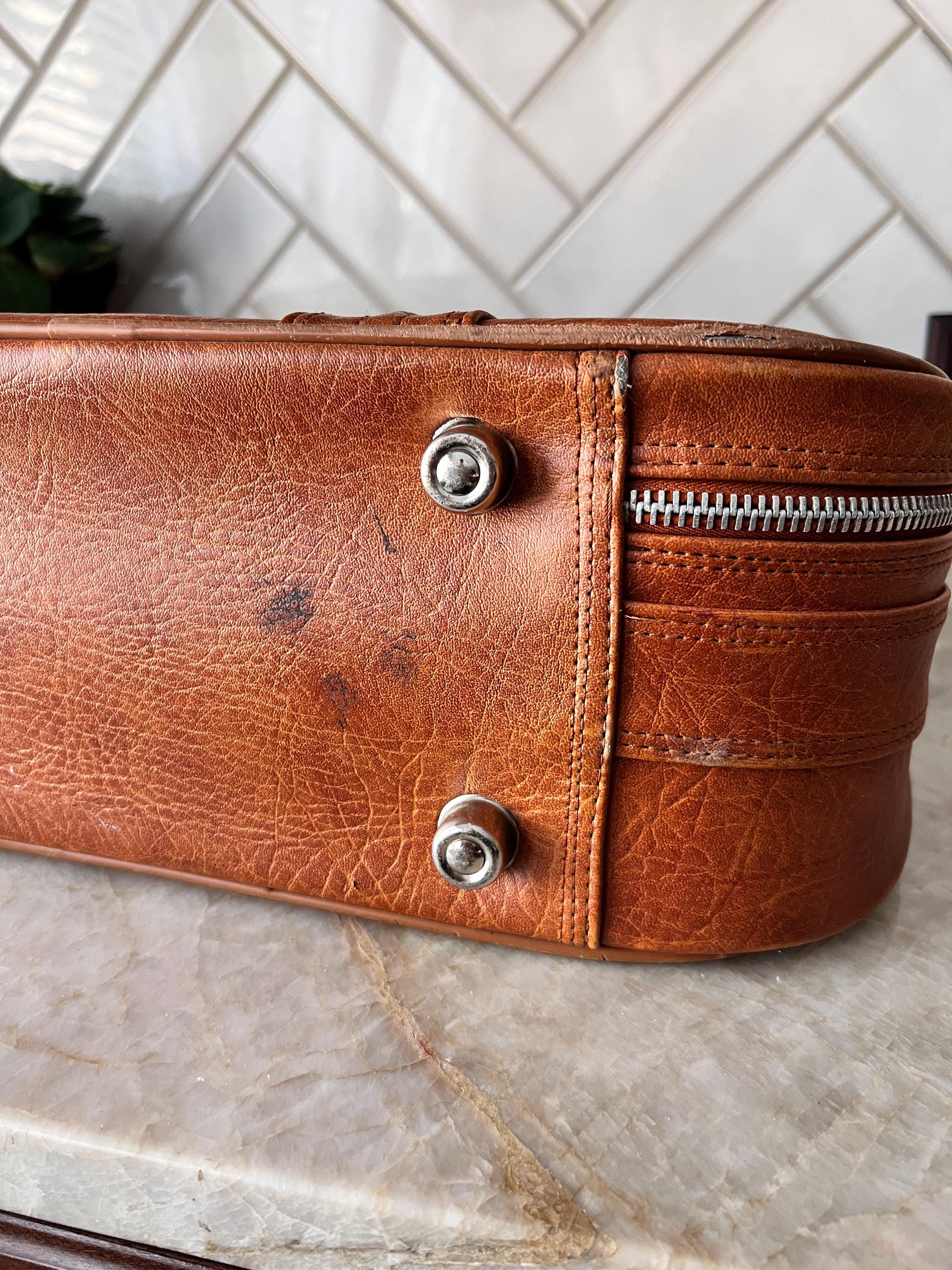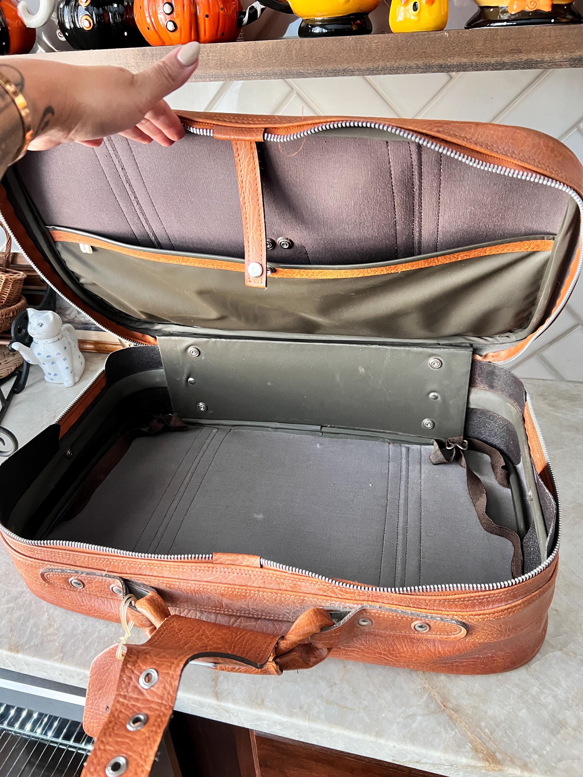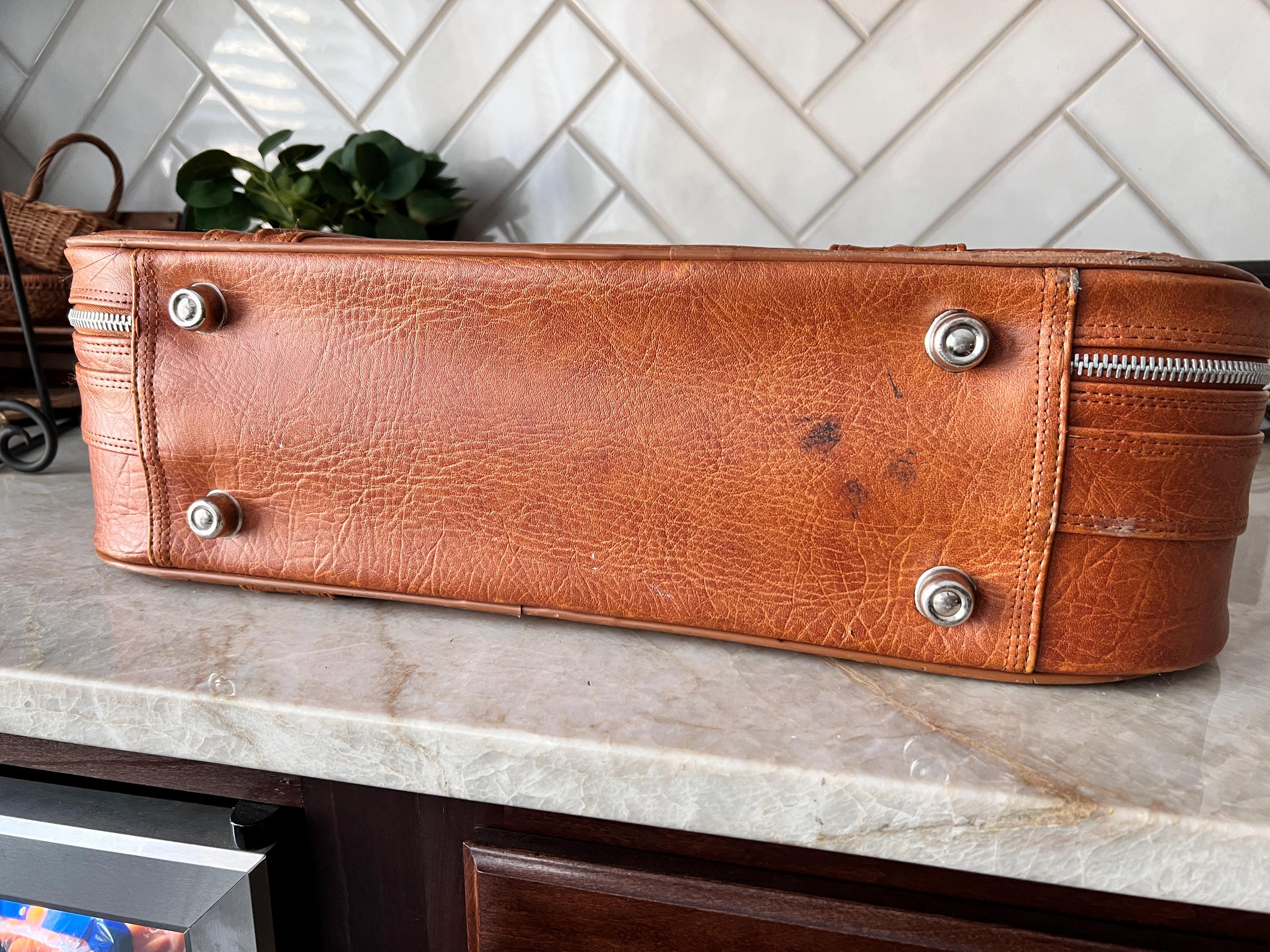 This suitcase is in beautiful vintage condition with minor signs of wear consistent with age, adding to its character. Zipper closure works well, and the interior is clean and usable.